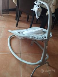Sdraietta a dondolo, pratica, portatile e pieghevole. Adatta fino ai 9 KG. È a batterie, con un'autonomia fino a 180 ore, con vibrazione e 12 diverse melodie con controllo del volume (ma purtroppo la funzionalità melodia non funziona più). Giocattoli sospesi. Schienale regolabile in 4 posizioni. Cuscino imbottito e rimovibile. Cintura addominale di sicurezza.