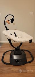 Questo dondolo è un vero e proprio gioiello tecnologico, che offre la combinazione di 8 movimenti di oscillazione ultra-fluidi a 5 velocità, paragonabili alle sensazioni provate tra le braccia dei genitori. Grazie all'innovativo sistema di seduta girevole a 360°, il bambino partecipa ai momenti della famiglia e rimane sempre vicino a voi. Potete sistemare il vostro bambino nel seggiolino in base alle sue esigenze grazie alle 5 posizioni di seduta che possono essere facilmente regolate con una sola mano. Per calmare il bambino, Swoon Evolution dispone anche di 12 tracce musicali 🎶 (melodie, rumori bianchi e suoni della natura). E grazie al suo telecomando, potrete gestire tutto a distanza (modalità di oscillazione, velocità, timer e melodie). Sdraietta usata pochissimo, condizioni pari al nuovo, i giochi da appendere in dotazione mai usati in quanto li avevamo sostituiti con altri. Vendiamo ancora nella scatola originale, completa di istruzioni di montaggio. Spedizione a carico dell'acquirente, o ritiro a mano