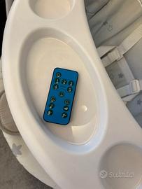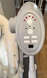Accessori: dotata di telecomando per attivare a distanza il movimento della seduta e azionare le melodie musicali con volume regolabile.Vassoio facilmente rimovibile.Barra porta giochi rotante con peluches e graziosa luce con diversi colori.Controller, timer di spegnimento 15-30-60 minuti.16 melodie musicali.