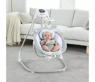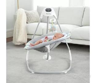 ltalena simplecomfort everston per rendere la vita quotidiana delle mamme più semplice e comoda. L'ampio seggiolino con reclinazione regolabile ruota di 180.gradi per far sì che la mamma non perda di vista il bambino, che potrà dondolare non in una, non in 2, ma ben in 3 diverse direzioni. il telaio superleggero è dotato di ruote e di una comoda maniglia facile da tirare, che rende semplice lo spostamento di questa grande altalena da una stanza all'altra. Mediante il pannello di controllo gentletouch è possibile personalizzare l'esperienza rilassante del bambino con vibrazioni rilassanti, melodie, suoni della natura e rumore bianco. Godete dei momenti di riposo con un timer di oscillazione che può essere impostato a 30, 45 o minuti. La tecnologia truespeed mantiene 6 velocità costanti, anche quando il bambino cresce. La tecnologia whisperquiet garantisce un funzionamento silenzioso affinche' il bambino riposi indisturbato. La giostrina è dotata di 2.adorabili personaggi di peluche che intrattengono il bambino mentre è cullato in soffici tessuti. Quando il giocattolo si sporca, potete rimuovere il cuscino del seggiolino e metterlo in lavatrice. Il raffinato modello si adatterà sicuramente a qualsiasi arredamento ed è perfetto sia per una bambina che per un bambino. Adattatore per presa elettrica incluso.