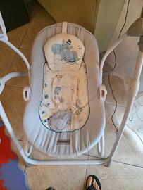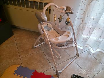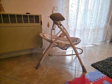 Si può utilizzare anche come sdraietta a dondolo. Dotata di telecomando per attivare a distanza il movimento della seduta e azionare le melodie musicali, con volume regolabile.