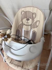 Vendo tenuta in ottime condizioni: Foppapedretti Sdraietta Altalena Carillon, Dondolo Musicale con diverse Melodie, per Bambini dalla nascita a 9 Kg, Dispositivo di Movimento della seduta, Telecomando per attivazione a distanza, Teddy * Sdraietta altalena carillon è un dondolo musicale con dispositivo di movimento della seduta e con diverse melodie con volume regolabile * Dotata di telecomando per attivare a distanza il movimento * Sistema a dondolo con dispositivo di bloccaggio e sbloccaggio con movimento basculante a più velocità * Vassoietto amovibile, barra rotante con peluche e luce con diversi colori * Testata a normativa europea * Dimensioni aperto cm: H 94,5, P 74,5, L 67 * Peso: 7,5 kg