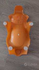 OKBaby sdraietta anatomica con seduta in gomma antiscivolo per bagnetto del neonato (0 - 12 mesi). Colore arancio. Piedini con ventose.