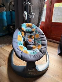 LIONELO Ralf 2in1 Sdraietta dondolo per neonato da 0 fino a 9kg Altalena con 12 melodie programmate, Telecomando, Culla 5 velocità di dondolio, Blocco, Regolazione dello schienale Silenzioso Timer Tenuta benissimo ed usata solo un paio di volte ( solo qualche riga nella parte che tiene i pupazzetti avendola appoggiata contro il muro ma volendo si puo anche staccare dalla sdraietta, la sdraietta invece è come nuova)