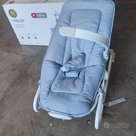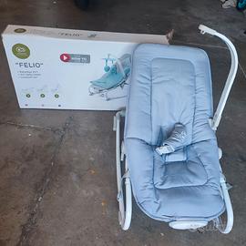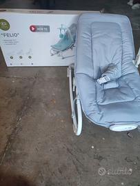 Sdraietta reclinabile a tre posizioni, può essere stabile oppure a dondolo, completa di zanzariera, braccio porta giochino, tanta bella nanna. Se volete c'è la sua scatola.