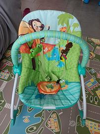 Vendo per inutilizzo sdraietta che può sia dondolare sia stare fissa ferma. Cinture regolabili in altezza. Presente un arco dove sono appesi due giochini. Ritiro a mano a carico dell'acquirente a Bologna zona San Donnino.
