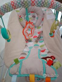 Sdraietta neonato con melodie, due volumi di regolazione, vibrazione ed arco con simpatici giochini per intrattenimento. Ben conservato, completo di scatola.