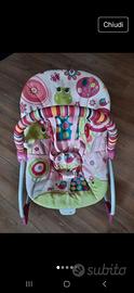 Sdraietta bright starts a dondolo rosa con vibrazione. Può essere utilizzata come dondolino o fissa. Può essere reclinata. La sdraietta è stata utilizzata per una bambina ed è in buono stato.