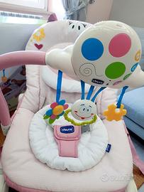 in ottime condizioni, conservata bene , adatta a fare le prime nanne , ha due posizioni fissa e a dondolo, ha due manici per essere trasportata, la seduta ha la vibrazione per aiutare a rilassarsi e la barra sonora ha la possibilta' di registrare la propria voce e musichette
