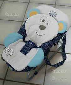 Vendo Sdraietta Chicco Dreams blu e bianca, in PERFETTE condizioni, completa del suo imballo originale, fascia con giochini, riduttore a forma di orsetto e copertina come da foto.