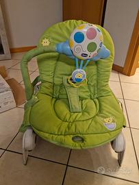 schienale reclinabile, interattiva con suoni, vibrazioni, luci e melodie e la possibilità di registrare la voce della mamma. Max 18 kg.