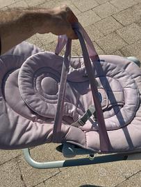 Dotata di cintura di sicurezza e seduta morbida, ideale per far rilassare il bambino in totale comfort.Perfetta per neonati fino a circa 9 kg.Usata poco, sempre tenuta con cura.Ritiro a mano in zona . Il dondolo può essere fissato o reso mobile facendo leva. Regalo giochino da appendere