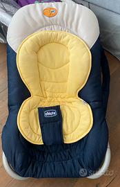 Sdraietta Chicco relax and play completa di giochini. Manca la barra da attaccare alla sdraietta, completa di scatola e istruzioni.