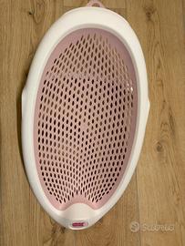 •Sdraietta da bagno posizionabile all'interno della vasca da adulti, per fare il bagno al bambino in pieno comfort.