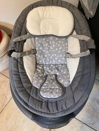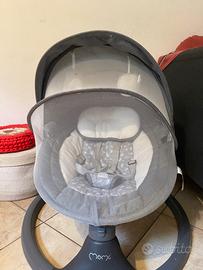 Sdraietta dondolante per neonato con cappottina parasole e zanzariera. Alimentata sia a batteria o collegando la spina. 5 velocità di dondolio, 10 melodie e timer per entrambi. Dotata di telecomando e Bluetooth per cellulare.