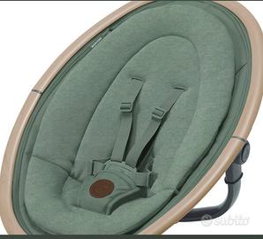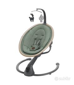 Vendi per doppio regalo sdraietta elettrica della maxi cosi, colore betond green NUOVA IN IMBALLO ORIGINALE Descrizione Un'elegante altalena elettrica progettata per dare una mano ai genitori a occuparsi del loro bambino. Usala dalla nascita fino a 9 mesi di età (circa 9 kg). Cassia si accorge quando il tuo bambino è nervoso e inizierà a dondolare per calmarlo. Coccolato in un morbido riduttore imbottito, il tuo bambino potrà distrarsi con 12 melodie e suoni della natura che Cassia riproduce. Ovunque sarai nella stanza, grazie alla rotazione a 360°, non perderai mai il contatto visivo con il tuo piccolo. Il design di Cassia è stato studiato per calmare il tuo bambino assicurandogli il massimo comfort nei primi mesi di vita. Il morbido riduttore per neonato lo coccola e lo calma. Inoltre, grazie alle due posizioni reclinate, potrai contare su una comoda opzione per il riposo e un'altrettanto comoda posizione seduta. In più, grazie alle cinture di sicurezza a 3 punti imbottite, il tuo bambino sarà sempre comodo e sicuro. Cassia ha cinque velocità di oscillazione e 12 melodie rilassanti e suoni della natura, per confortare e calmare dolcemente il tuo piccolo quando non puoi farlo tu perché devi lavorare, cucinare o pulire. Facilità di utilizzo Lo schermo touch di Cassia semplifica con un clic la vita di chi ha un bambino piccolo di cui occuparsi. Come altalena più leggera nel suo genere, Cassia è estremamente facile da spostare in casa e, grazie alla rotazione a 360° della seduta, potrai sempre mantenere il contatto visivo con il tuo piccolo. Non preoccuparti se non hai una presa vicino, perché Cassia funziona anche a batteria. In più, Cassia è rivestita con tessuti di alta qualità facili da pulire, semplici da rimuovere e lavabili in lavatrice, così sarà sempre come nuova.