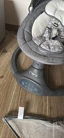 Sdraietta per bambini fino a 9 kg, pieghevole, con telecomando e Bluetooth, a batteria o elettricità, cintura in di sicurezza, protezione parasole, zanzariera, due peluche. Riproduzione di diverse melodie e dondolio a varie velocità. Utilizzata pochissimo.