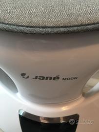 Sdraietta elettrica per bambini modello Moon marca Jane. Colore grigio e bianco. Completa di tutto (alimentatore, telecomando, scatola, istruzioni). Oscilla, con musichette o rumori (mare, uccellini, ecc).