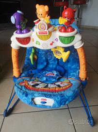 Sdraietta Fisher Price, basculante e stoffa removibile per poter essere lavata, archetto con giochi luminosi che si attivano con i piedi del bimbo attraverso tasti che si trovano sul sedile,cinture per la sicurezza del bambino,senza scatolo originale