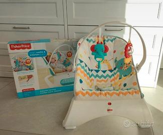 Vibrazioni calmanti, seduta morbida e barra giocattolo.