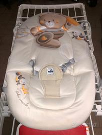 Giocam è la comoda sdraietta per cullare i bambini fino a 9kg. dotata di ampia e avvolgente seduta, schienale regolabile in 3 posizioni, base a dondolo - con gommini antiscivolo, sospensione anteriore, maniglie da trasporto. Rivestimento sfoderabile e lavabile a 30° C. chiusura ultra piatta.