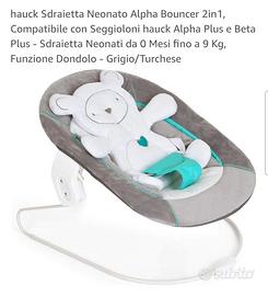 Sdraietta hauck alpha bouncer compatibile con seggiolone hauck alpha plus e beta plus. Si può utilizzare sul seggiolone evolutivo o solo come sdraietta, provvista di cintura a 3 punti e riduttore. È facile da montare e smontare con un click. Come nuova. Ritiro su Cologno Monzese.