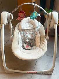 Vendo sdraietta Ingenuity Soothe 'n Delight Altalena portatile compatta a 6 velocità con musica e barra portagiochi, pieghevole per un facile viaggio - Cozy Kingdom, da 0 a 9 mesi di età.