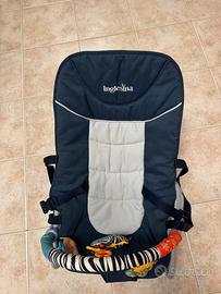 Sdraietta per neonati con struttura in metallo e seduta imbottita.