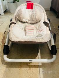 Sdraidetta pieghevole usata Jade, dispone di schienale regolabile in tre posizioni per dormire, riposare e giocare, rivestimento imbottito estraibile e lavabile. L’archetto in plastica con peluche ha un’attacco rotto da un lato. Venduto con scatola originale.