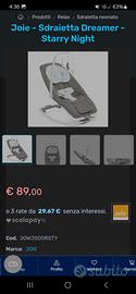 Sdraietta Joie Dreamer colorazione fern come in foto. Usata poco. Cintura leggermente ingiallita. Funzione musicale e vibrante funzionante ma da cambiare le pile.