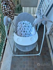 Altalena elettrica è adatta ai neonati fino a 6 mesi di età, con un peso massimo di 9 kg. L'altalena è multifunzionale si trasforma in una comoda Sdraietta con funzione dondolante con schienale regolabile in 2 posizioni, arco di gioco.