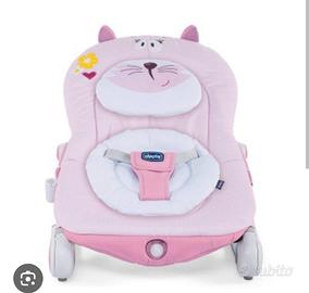 sdraietta rosa chicco per neonati, fissa e dondolo, con cintura e riduttori, suoni e vibrazione.