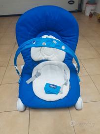 Sdraietta Neonato Max 18 Kg, schienale reclinabile, prima sedia con posizione fissa o basculante colore azzurro e bianco