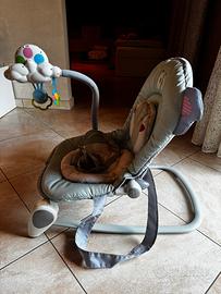 Utilizzabile sia come sdraietta (0 – 12 m) che come prima seduta (10/12 m – 18 kg). Posizione fissa o basculante, per il massimo del relax. possibili regolazioni dello schienale per adattarsi alla crescita del bambino. Dotato di gioco elettronico con luci, suoni e simpatici pendenti Cuscino e riduttore per seduta inclusi. Le fodere sono rimovibili e lavabili a mano in acqua fredda. Richiudibile e compatta.