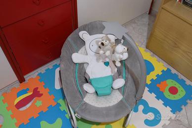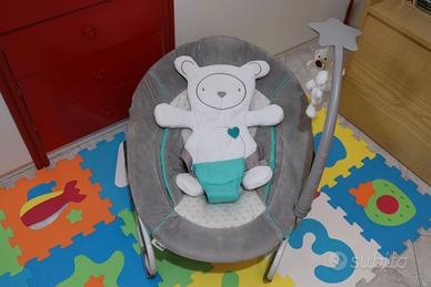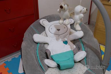 Sdraietta per neonati dalla nascita fino a 9 kg con funzione dondolo e schienale regolabile, cintura di sicurezza, arco giochi con orsacchiotti (removibile) e riduttore. Con manici per il trasporto. Peso dell’articolo circa 3 kg. Il rivestimento è sfoderabile e lavabile in lavatrice. Ottime condizioni,usata solo per 5 mesi.