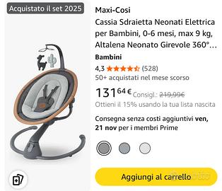Sdraietta neonato 0/6 mesi Maxi cosi acquistata a settembre ed utilizzata 2 volte