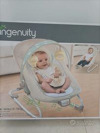 Vendo per inutilizzo sdraietta neonato pulcino marca Ingenuity 3-18 kg con melodie e vibrazione. Seggiolino reclinabile in 3 posizioni. Dotata di barra giocattoli rotante e rimovibile con 2 peluche.