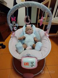 Bright Starts MINNIE MOUSE Seggiolino Comodo Vibrante per Neonati - Musica, Barra Giocattoli Rimovibile, 0-6 Mesi Fino a 9 kg (Rosy Skies). Sdraietta vibrante e rilassante con dolci melodie. Prodotto PARI AL NUOVO, usato per far giocare mia figlia con bambola. Ritiro a mano in Roma, zona Talenti o spedizione.