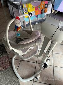 Sdraietta neonato con movimento dondolo e musica attacando presa si ha la possibilità di avere luce musica e dondolo. Seduta mobile .