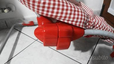 Vendo sdraietta a dondolo bimbo/a marca Brevi di colore rosso e struttura in metallo color grigio.