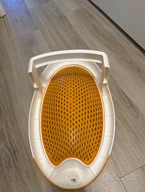 Sdraietta riduttore per il bagnetto dei neonati. Molto utile per i primi bagnetti, in quanto aiuta a tenere il bimbo in acqua senza il rischio di scivolamenti.