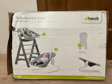 Vendo per fine utilizzo sdraietta per seggiolone hauck - Alpha bouncer 2 in 1 in perfette condizioni. La sdraietta può essere utilizzata o come sedia per neonati nel seggiolone in legno Alpha+ o Beta+ o come struttura a dondolo a parte. Facilissimo in passaggio da una funzione all’altra. Dotata di cintura in 3 punti. Tiene fino a 9 kg. Colore grigio. Acquistata a 60€ su Amazon.