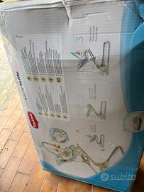 È presente anche l’arco giochi, ci sono musiche e vibrazione attivabili da un semplice tasto. Le ruote facilitano il trasporto. Regolabile in varie altezze.