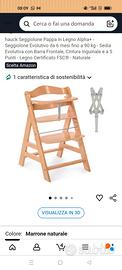 Vendo sedia il legno x bambini di ottima qualità. Per primi pasti a tavola ma usata fino ai 6 anni. Comoda x poggiapiedi e i primi anni anche con inserto poggia piatti o altro...