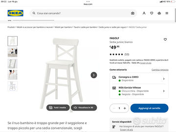 Sedia rialazata per bambini dai 2/3 anni fino ai 6 anni Ikea Ingolf