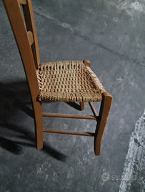 Sedia antica in legno impagliata rustica