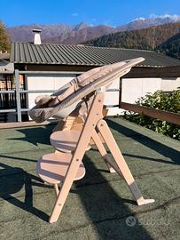 Completa di sdraietta per neonati, seggiolone, vassoio e schienale dai 3 anni in su.