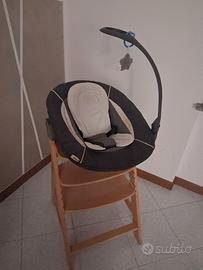 Ho anche la sdraietta che ha sia supporto a terra per dondolarlo sia supporto alla sedia che permette di averlo a tavola con voi durante i pasti. Compreso il riduttore.