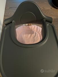 Sedia evolutiva originale Nomi. Completa di Baby Set, arco porta giochi, cintura, sdraietta newborn, cuscini rosa. Valore nuovo: 600€. Tenuto perfettamente, come nuovo.