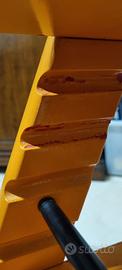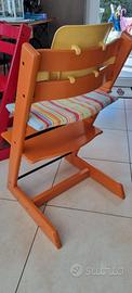Vendo sedia che si adatta alla crescita del bambino, originale Stokke Tripp Trapp. E' color arancio, riverniciata. Ha qualche segno, come si vede nelle foto, che non pregiudicano l'utilizzo: sono in legno di faggio, indistruttibili.